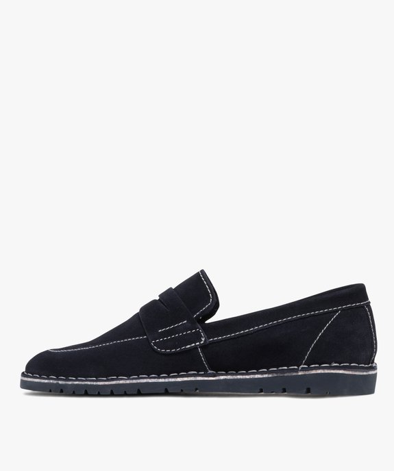 Mocassins homme unis dessus en cuir suédé style urbain - Taneo bleu chine