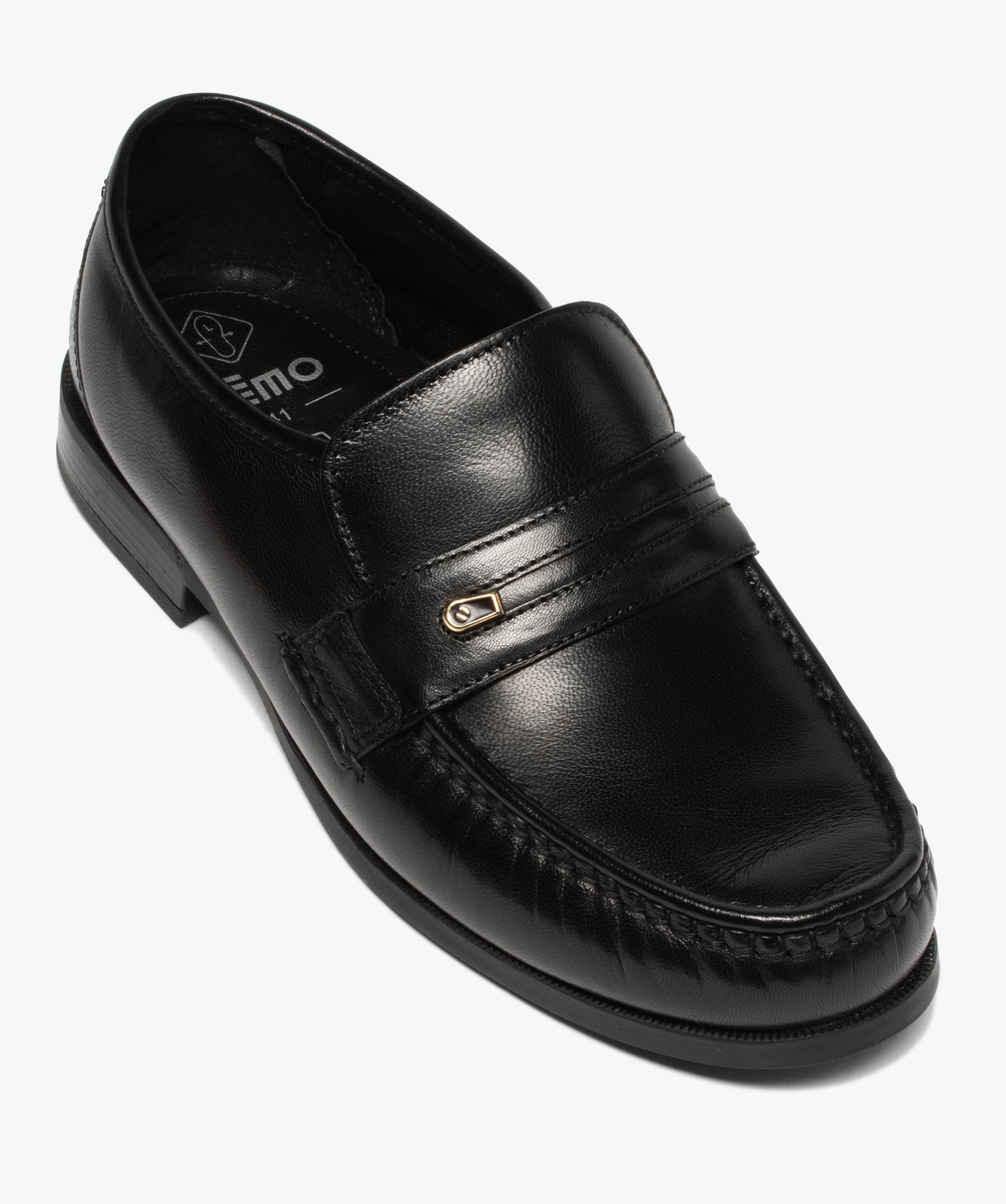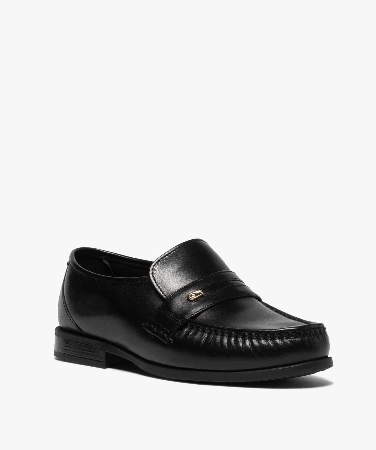 Mocassins homme unis en cuir coupe spéciale pied large noir
