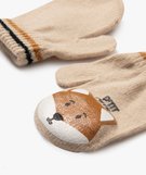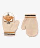 Adorable paire de moufles pour bébé garçon. Les moufles à pouce présentent une grosse tête de renard avec l'inscription "Petit Futé" sur le dessus de la main. Les poignets sont décorés de liserés contrastants. Confectionnées en maille extensible avec un poignet en bord-côte élastiqué, ces moufles sont faciles à enfiler, agréables à porter et restent bien en place.