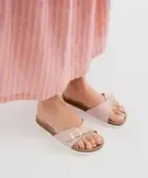 Misez sur la simplicité cet été : sobriété du design, facilité d'enfilage, couleur douce... mais girly ! Vous allez adorer ces mules pour femme. Elles se composent d'une large bride réglable par boucle sur l'avant-pied. Elles présentent aussi une semelle intérieure en cuir à reliefs anatomiques pour un soutien ergonomique et agréable du pied. On note la semelle intermédiaire en liège imitation pour une allure très nature et authentique. Des mules qui s'enfilent en un clin d'œil pour la plage, la maison ou pour un look minimaliste au quotidien.