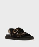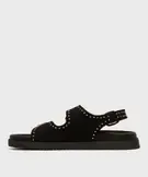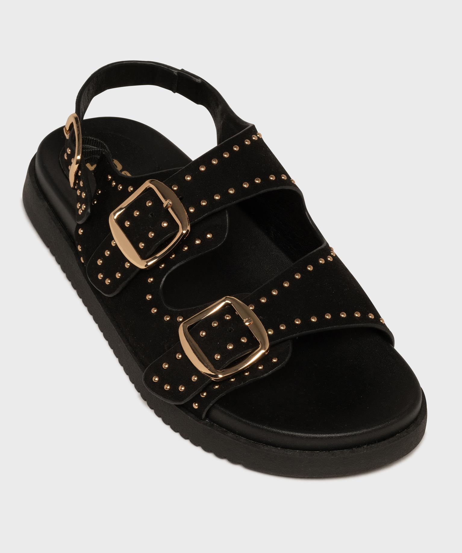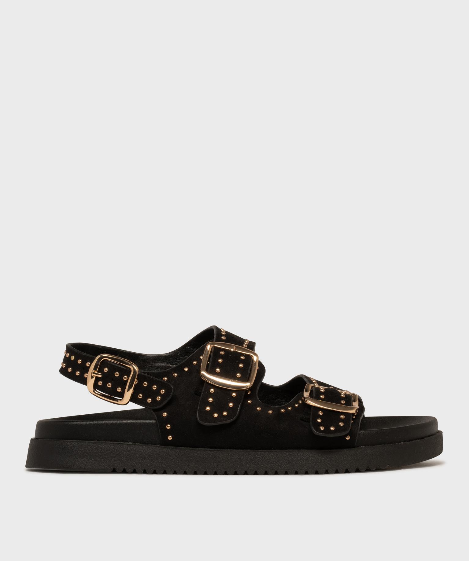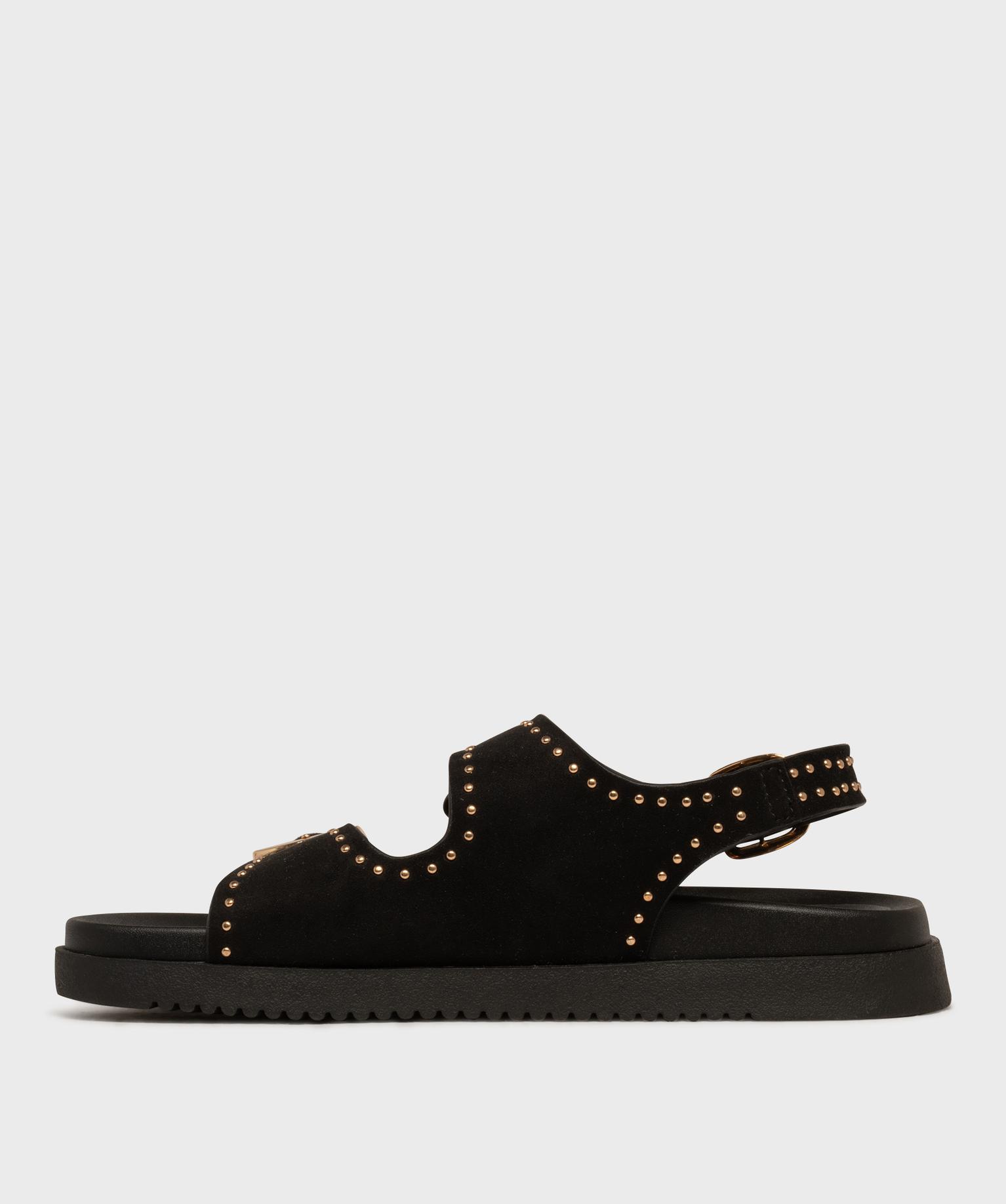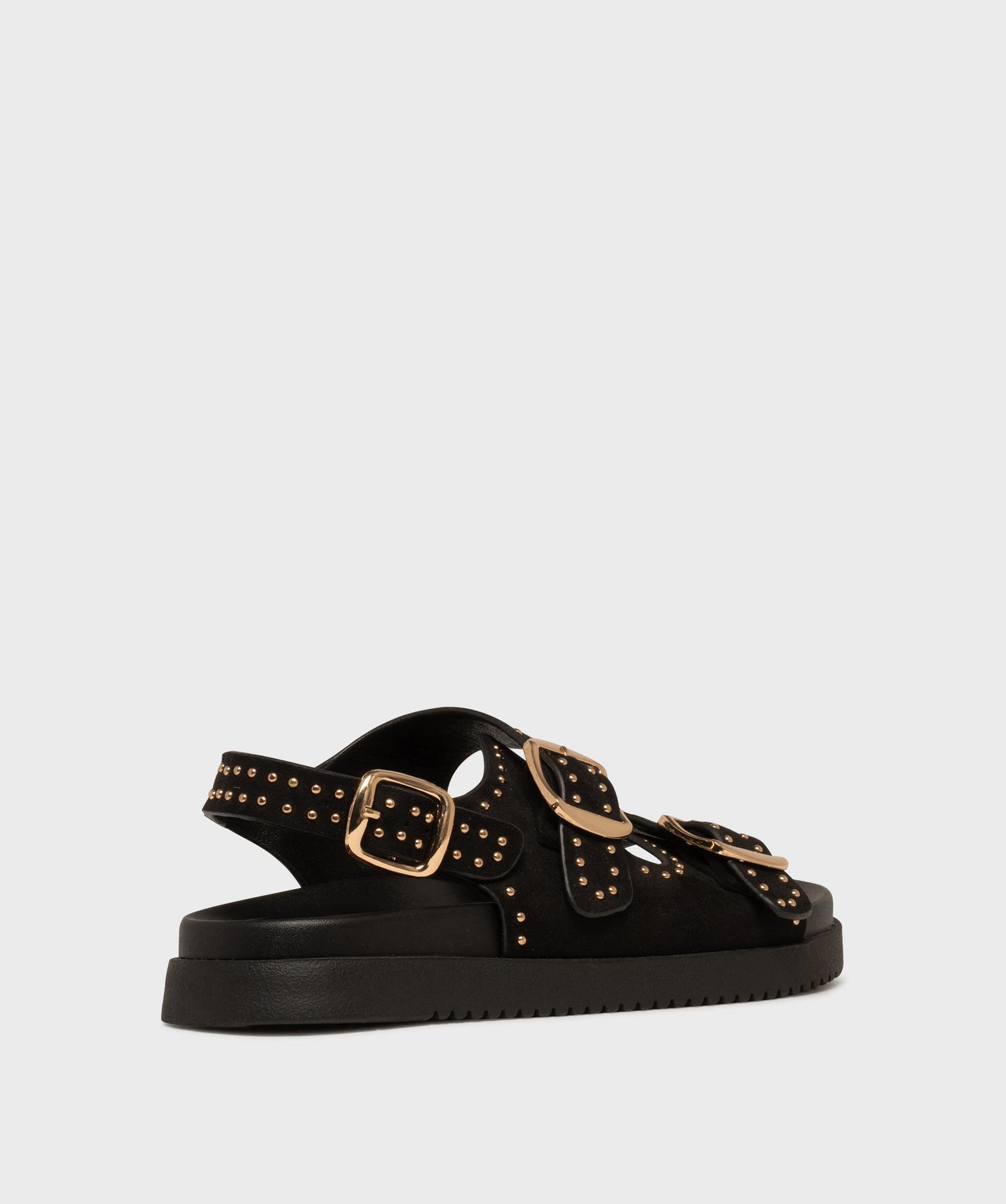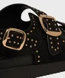 Mules à épaisse semelle en suédine à clous dorés femme noir
