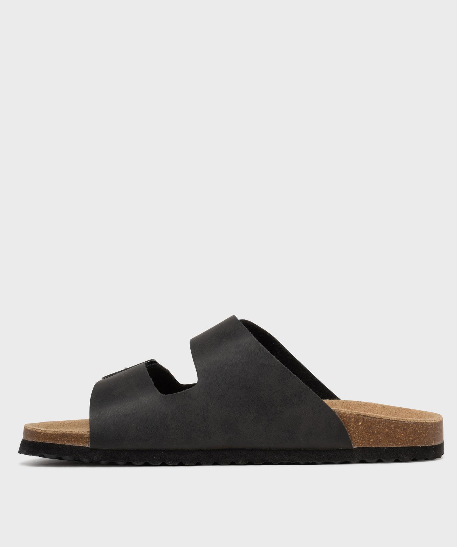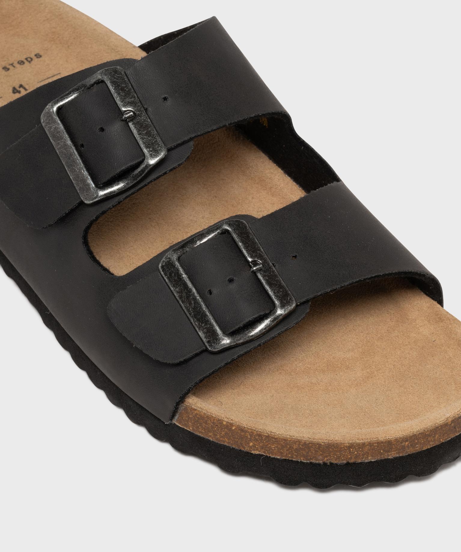 Mules à larges brides avec semelle intérieure cuir homme - Urban Steps noir