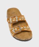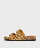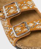 Ces mules fille au style décontracté et bohème séduisent par leurs larges brides recouvertes de perles. Leur semelle crantée avec décor liège assure un bon confort de marche et une touche naturelle à toutes les tenues. La semelle intérieure en suédine douce épouse la forme du pied pour un confort optimal. Parfaites pour les vacances, ces sandales faciles à enfiler se portent avec un jupon ou une robe fluide pour un look estival et folk tendance.