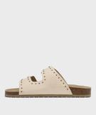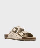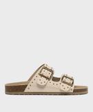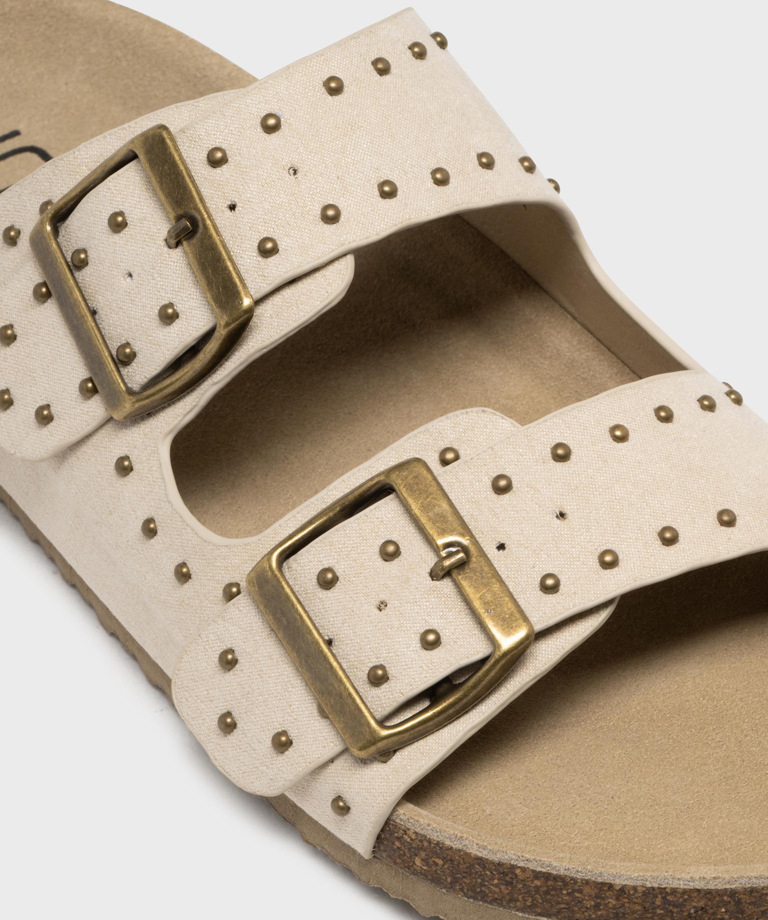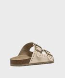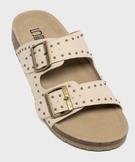 Pièces essentielles du vestiaire estival, les mules à larges bride avec semelle anatomique accompagnent désormais tous les looks, du plus décontracté au plus chic ! Ces sandales femme 5 Miles possèdent un dessus en toile rehaussé de petits clous métalliques, et s’ajustent à l’aide de grosses boucles. Elles dont dotées d’une semelle en cuir de forme anatomique, offrant confort et respirabilité. La semelle extérieure effet liège complète le modèle avec une note authentique et estivale.