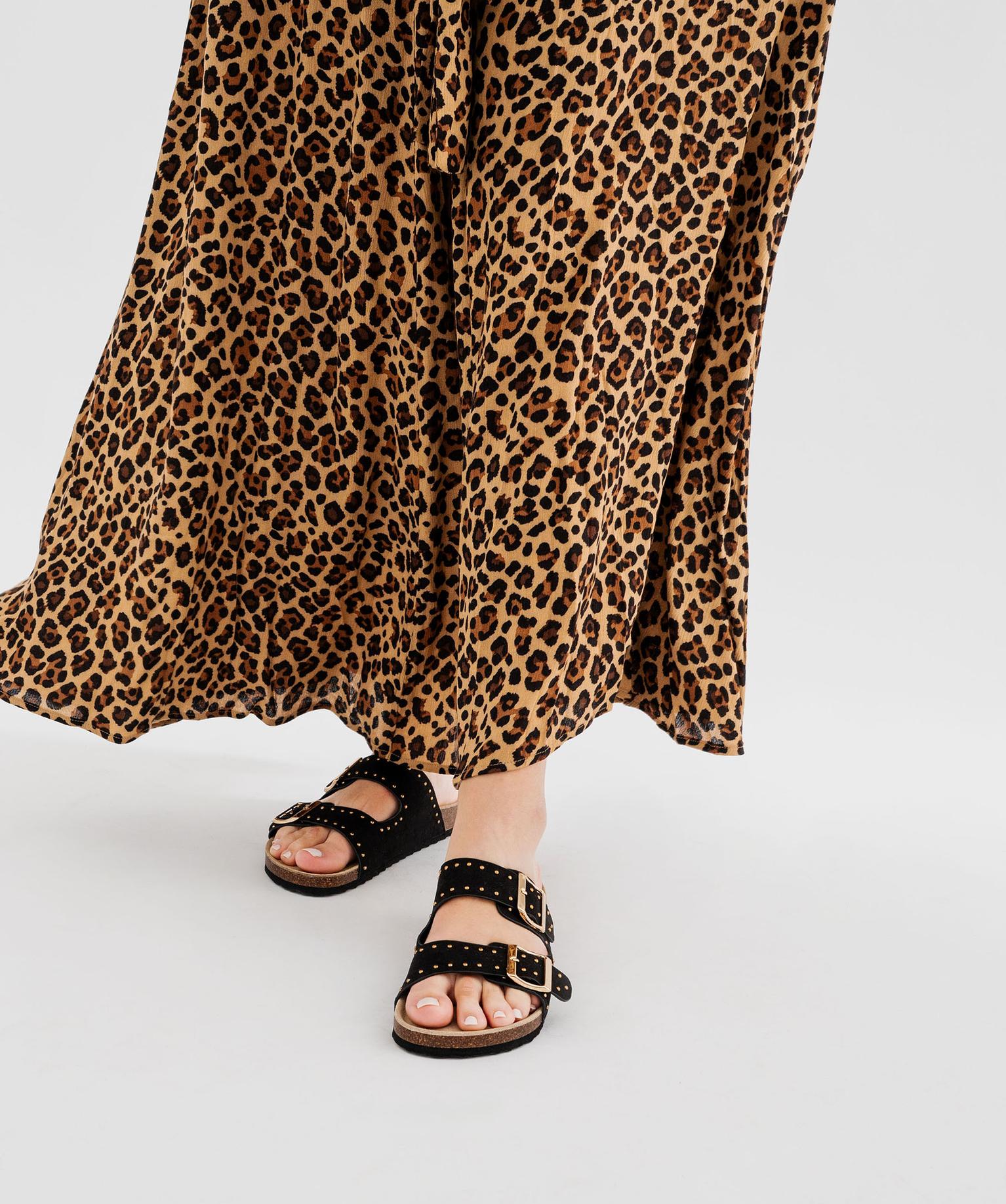 Pièces essentielles du vestiaire estival, les mules à larges bride avec semelle anatomique accompagnent désormais tous les looks, du plus décontracté au plus chic ! Ces sandales femme 5 Miles possèdent un dessus en toile rehaussé de petits clous métalliques, et s’ajustent à l’aide de grosses boucles. Elles dont dotées d’une semelle en cuir de forme anatomique, offrant confort et respirabilité. La semelle extérieure effet liège complète le modèle avec une note authentique et estivale.