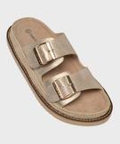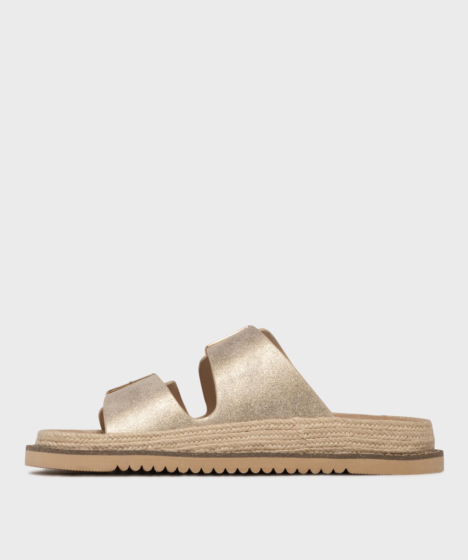 Mules à petit talon compensé et larges brides brillantes femme - LuluCastagnette dore