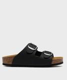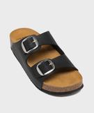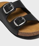 Ces mules pour femme allient confort et style avec une conception soignée et des détails raffinés. Les deux larges brides ornées de grosses boucles dorées apportent une touche d'élégance. La semelle intérieure en cuir avec reliefs anatomiques garantit un confort optimal. L’épaisse semelle tendance, avec son aspect liège, confère à ces nu-pieds une allure moderne et décontractée. La tige métallisée ajoute une note chic et brillante, parfaite pour rehausser vos tenues estivales ou de soirée.