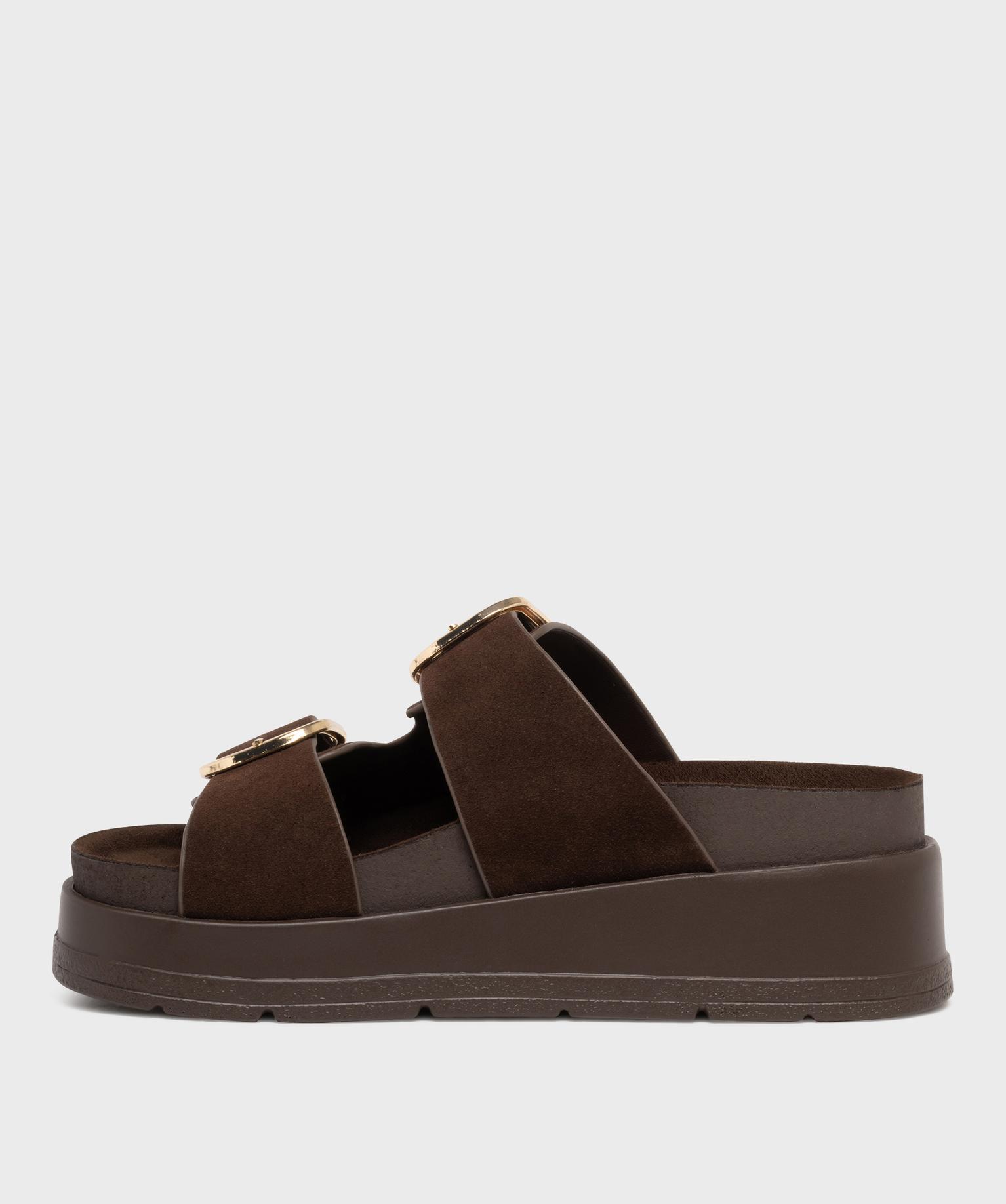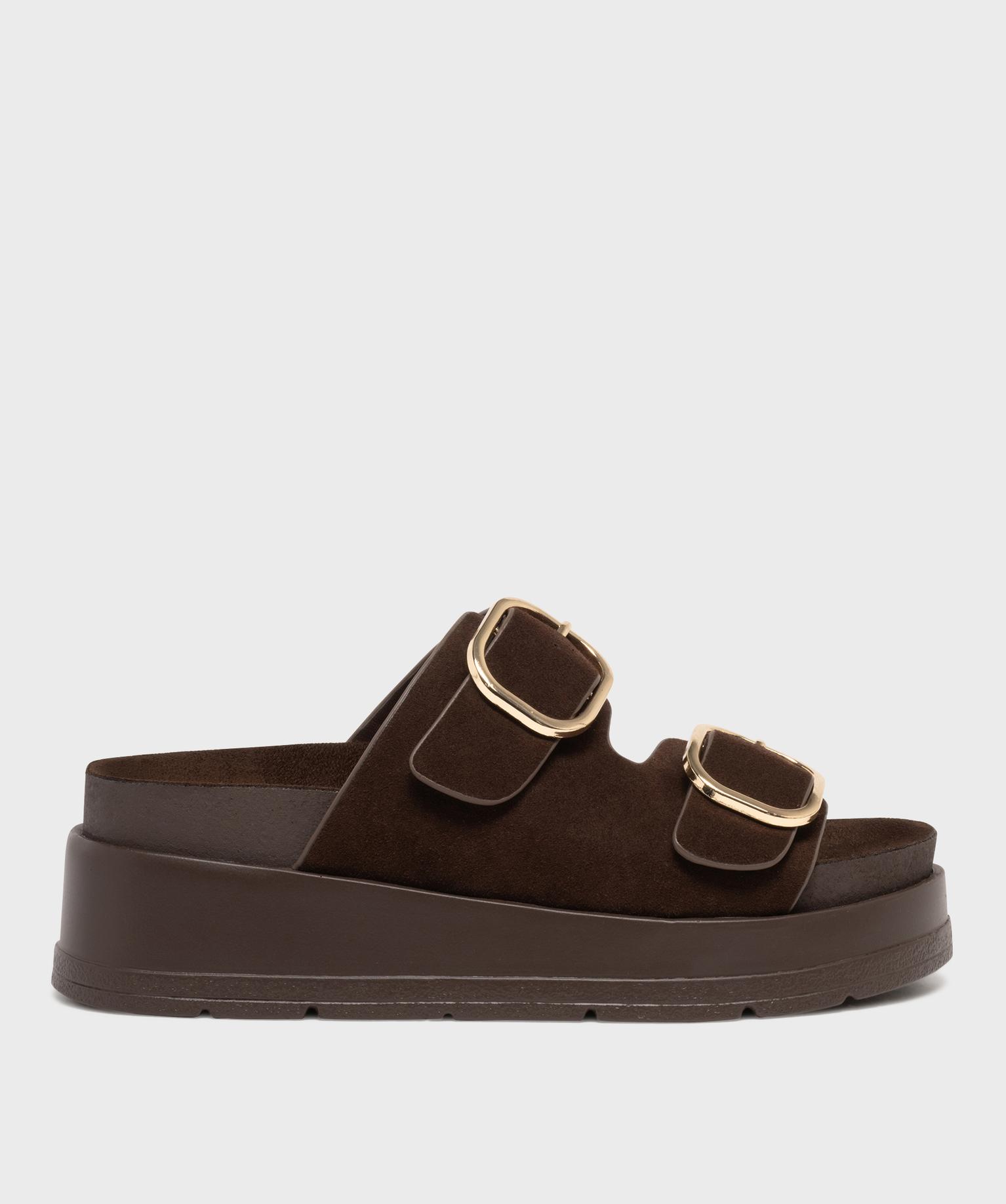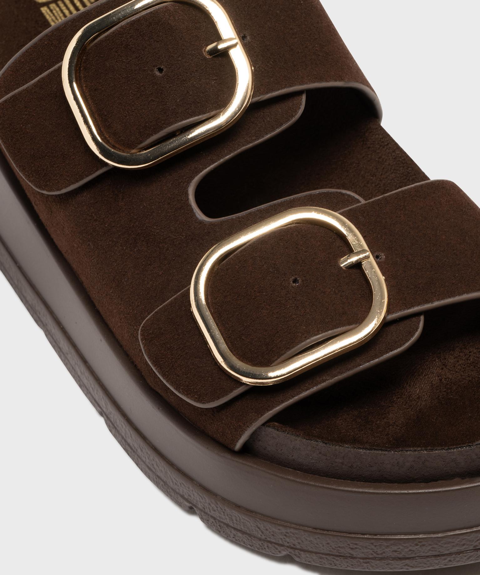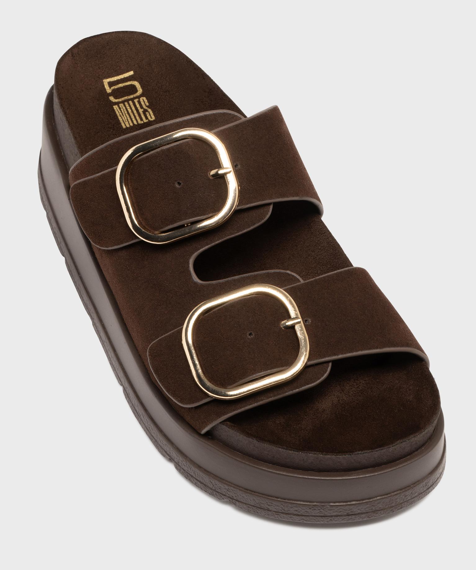 Mules à semelle plateforme et grosses boucles femme marron