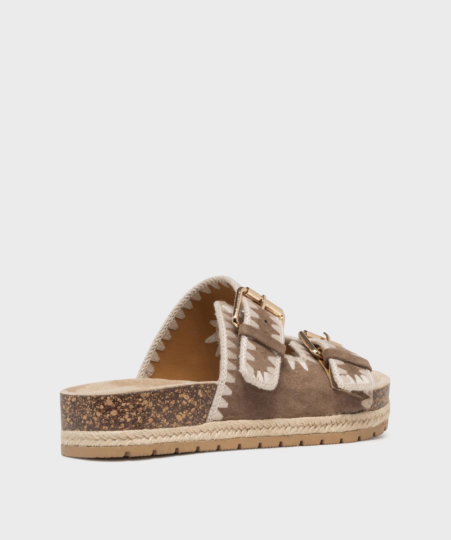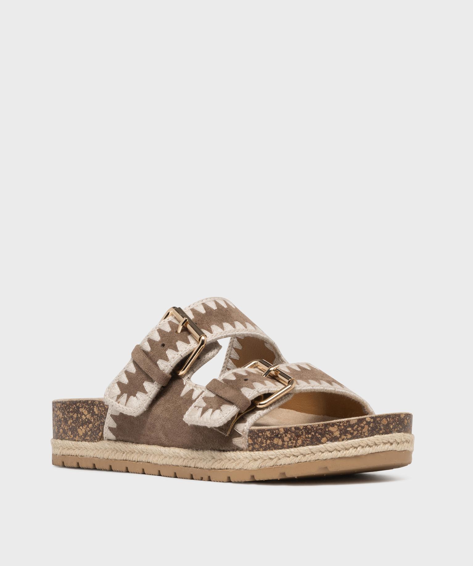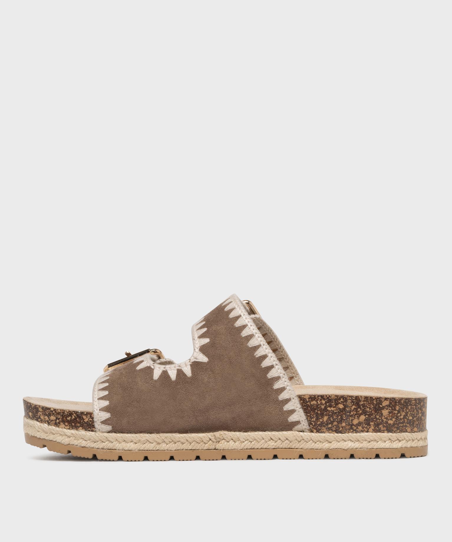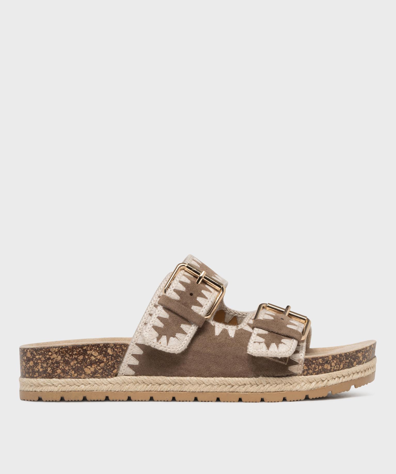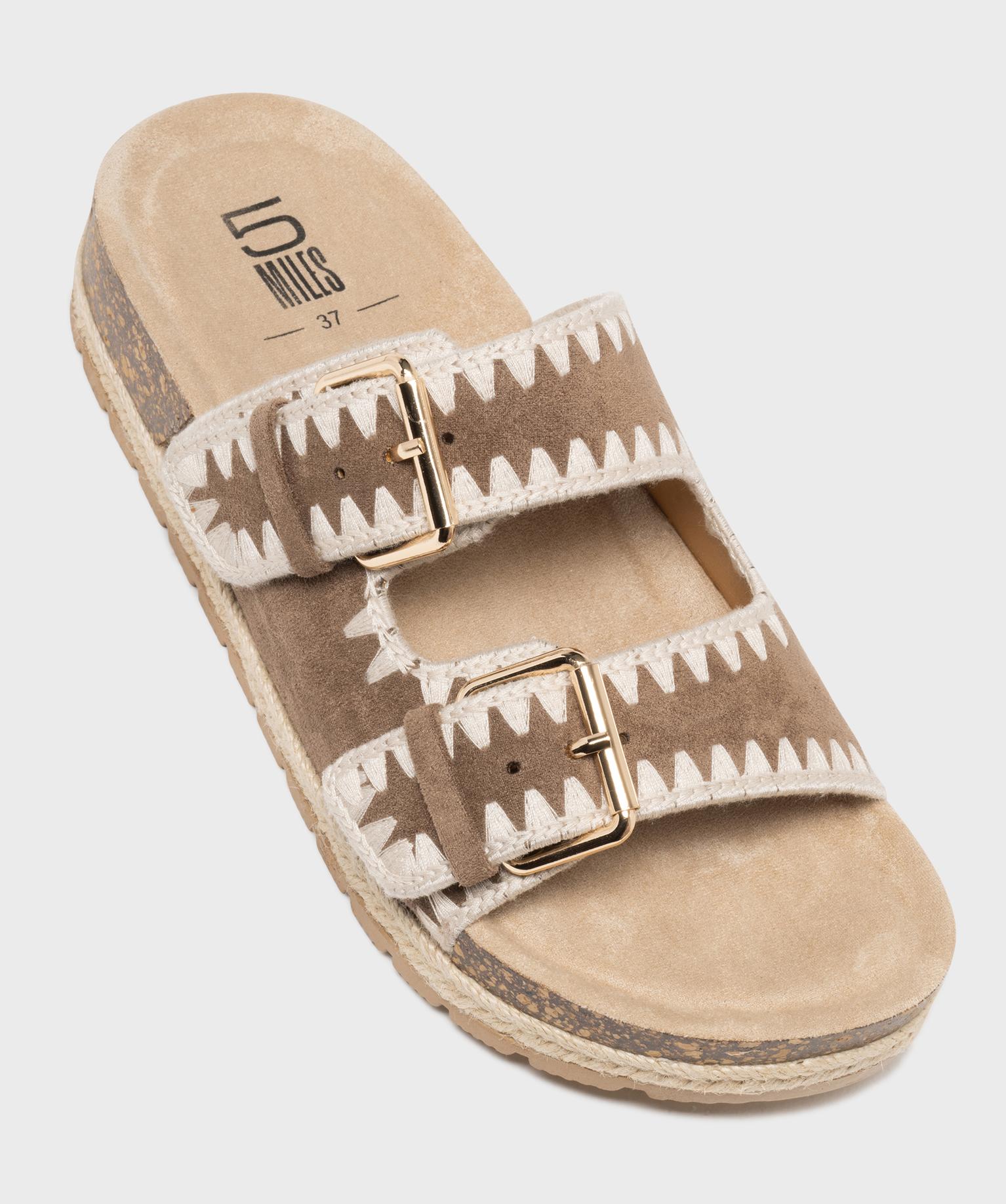 Mules à semelle plateforme et larges brides brodées femme - 5 Miles beige