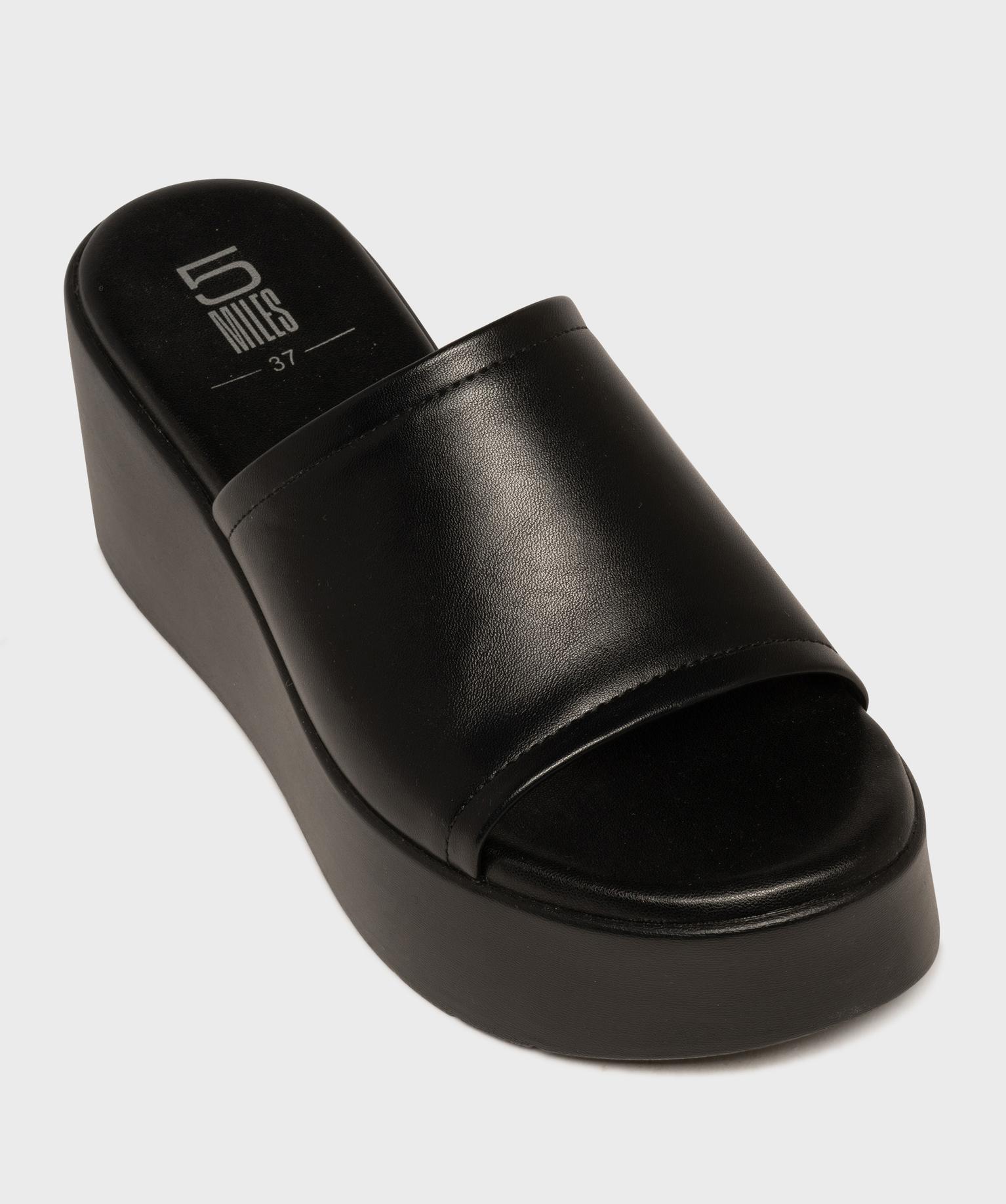 Mules à semelle plateforme et talon compensé femme noir