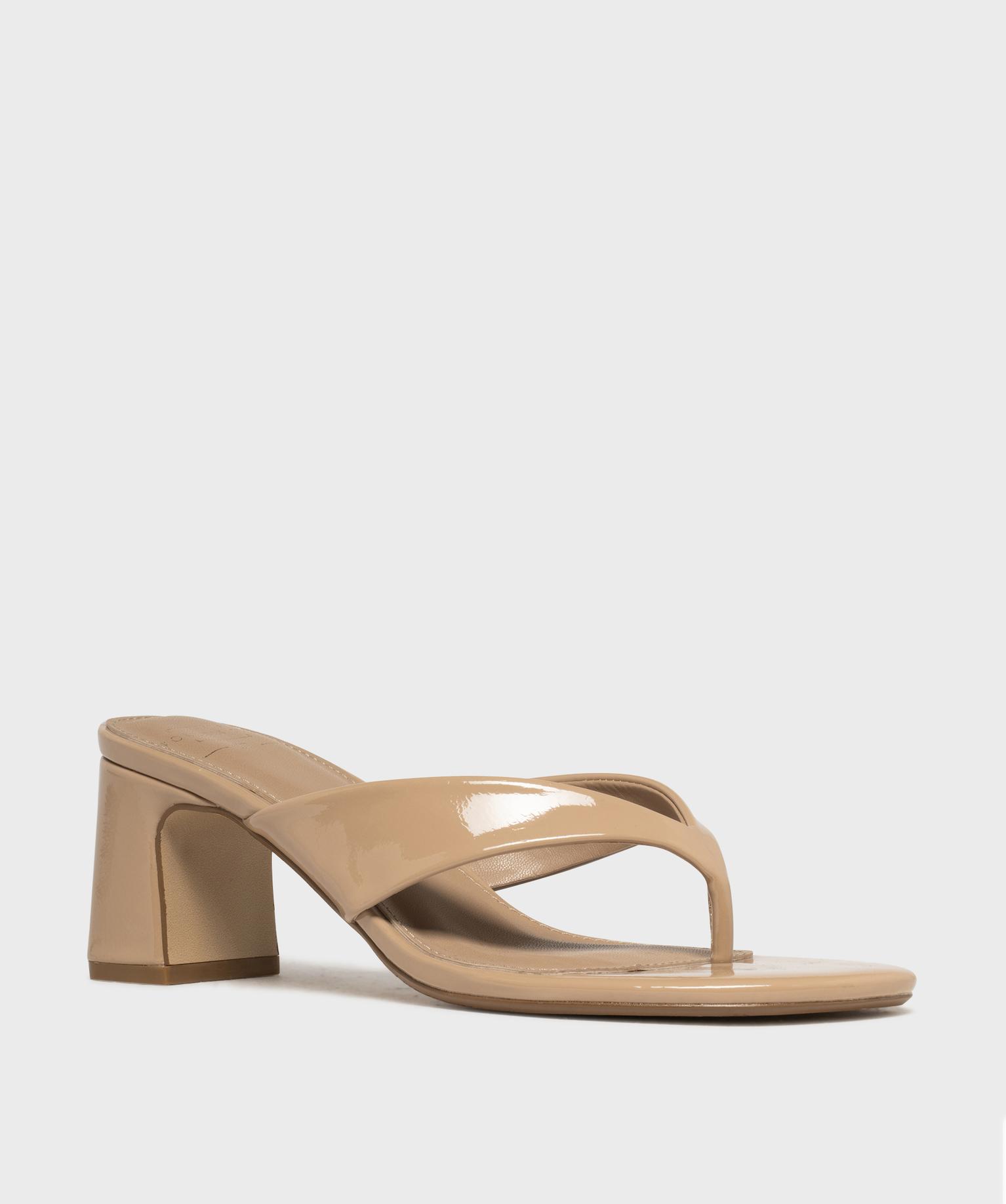 Mules à talon large et entredoigt femme - Follow Me beige vif