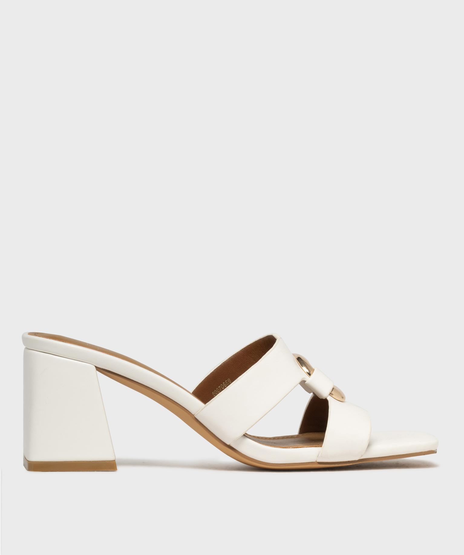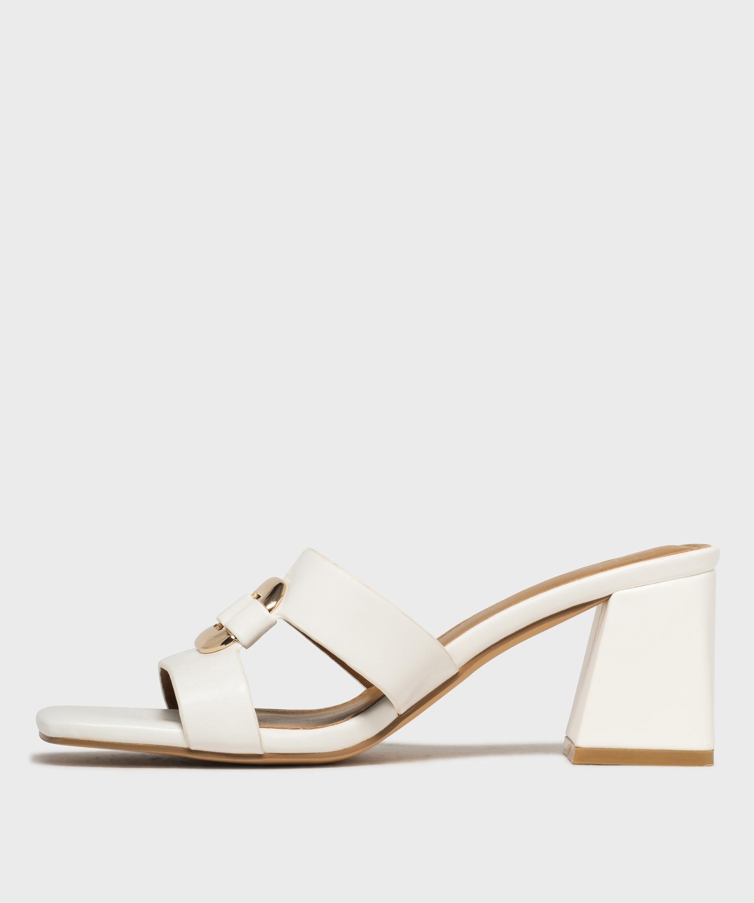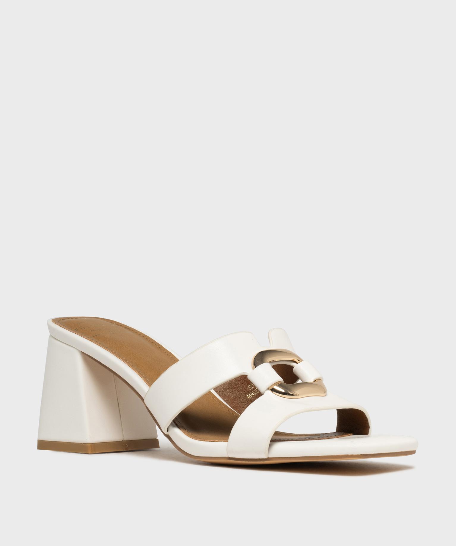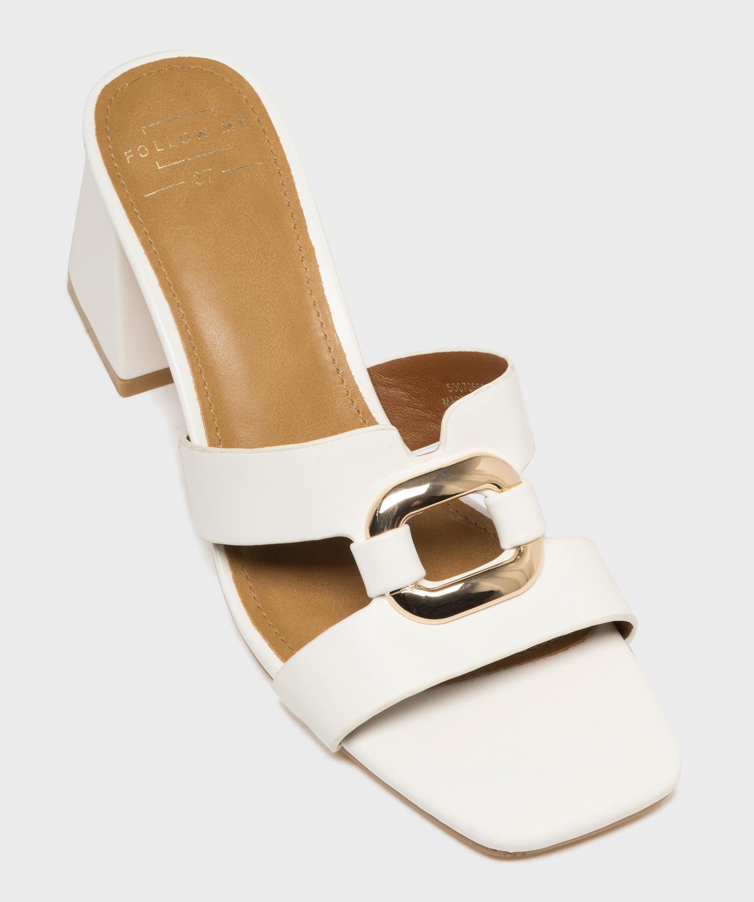 Mules à talon trapèze et bride bijou femme - Follow Me blanc