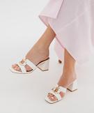 Mules à talon trapèze et bride bijou femme - Follow Me blanc