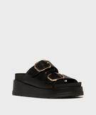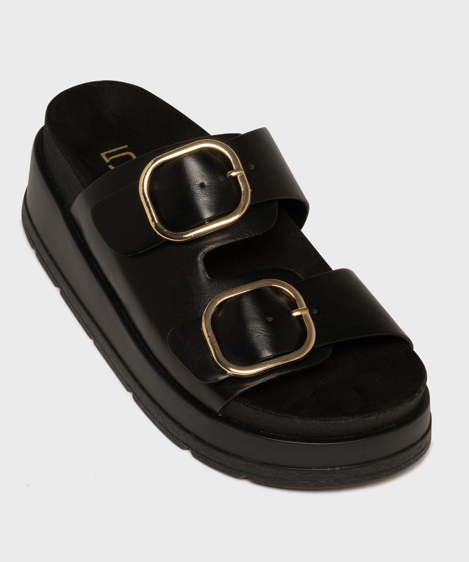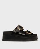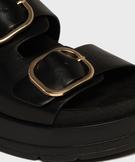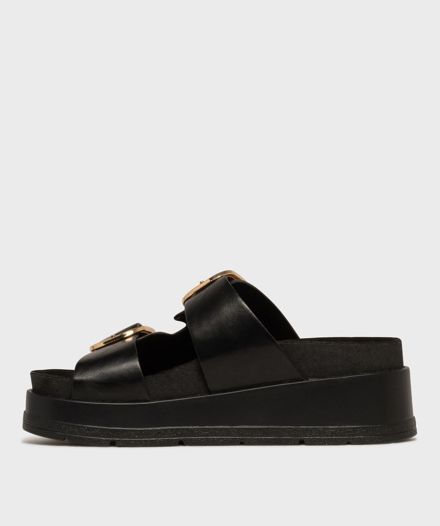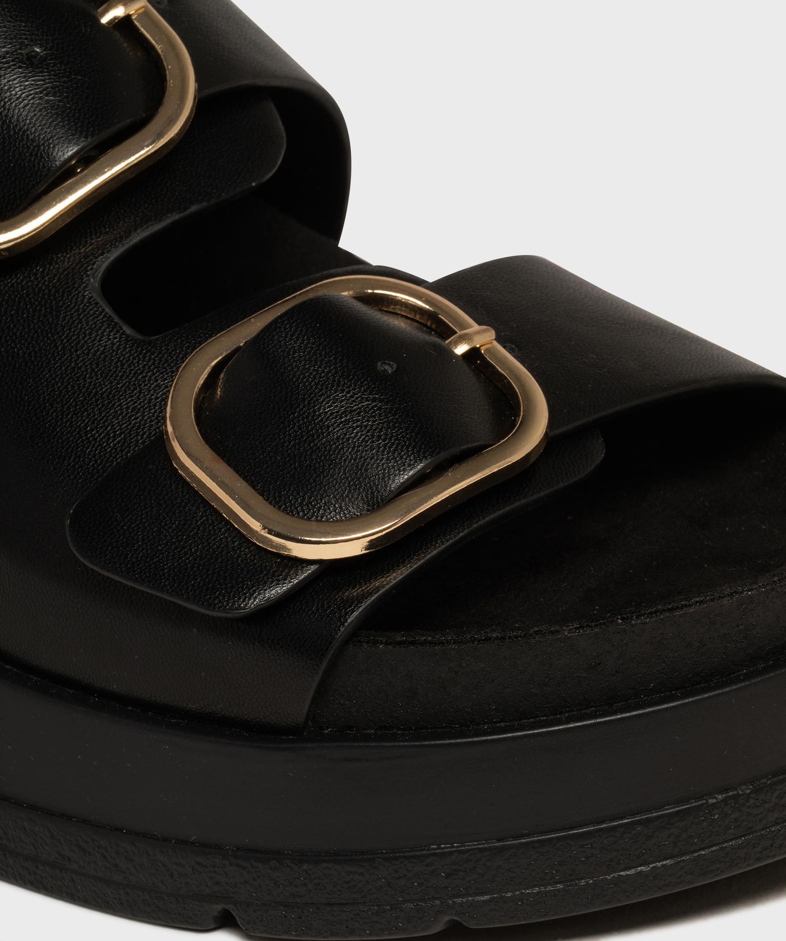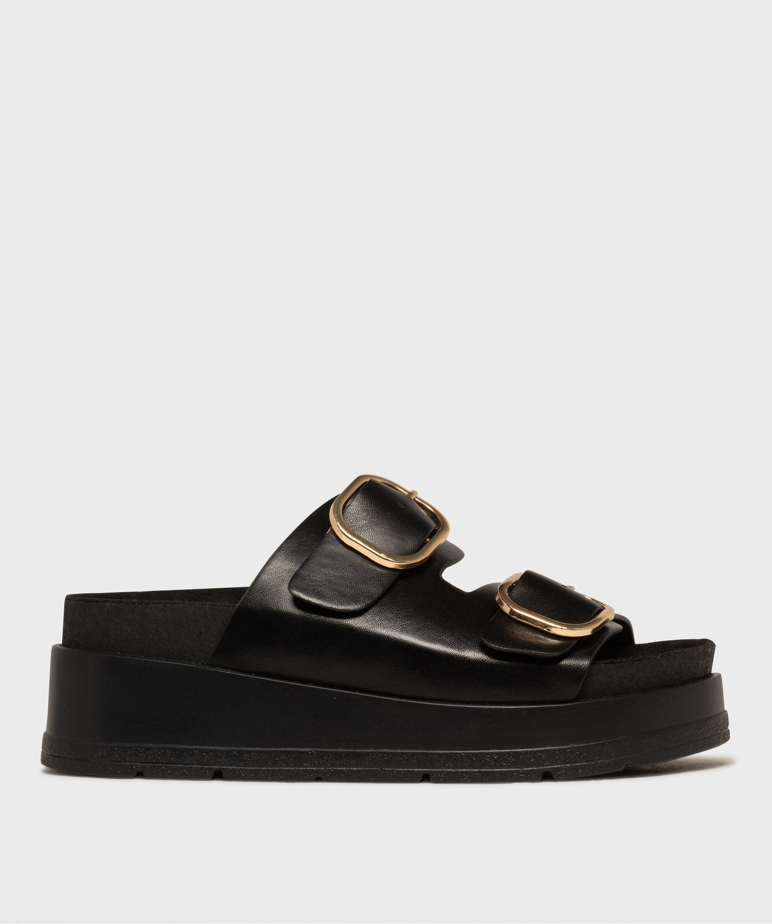 Mules compensées à larges brides et grosses boucles dorées femme - 5 Miles noir