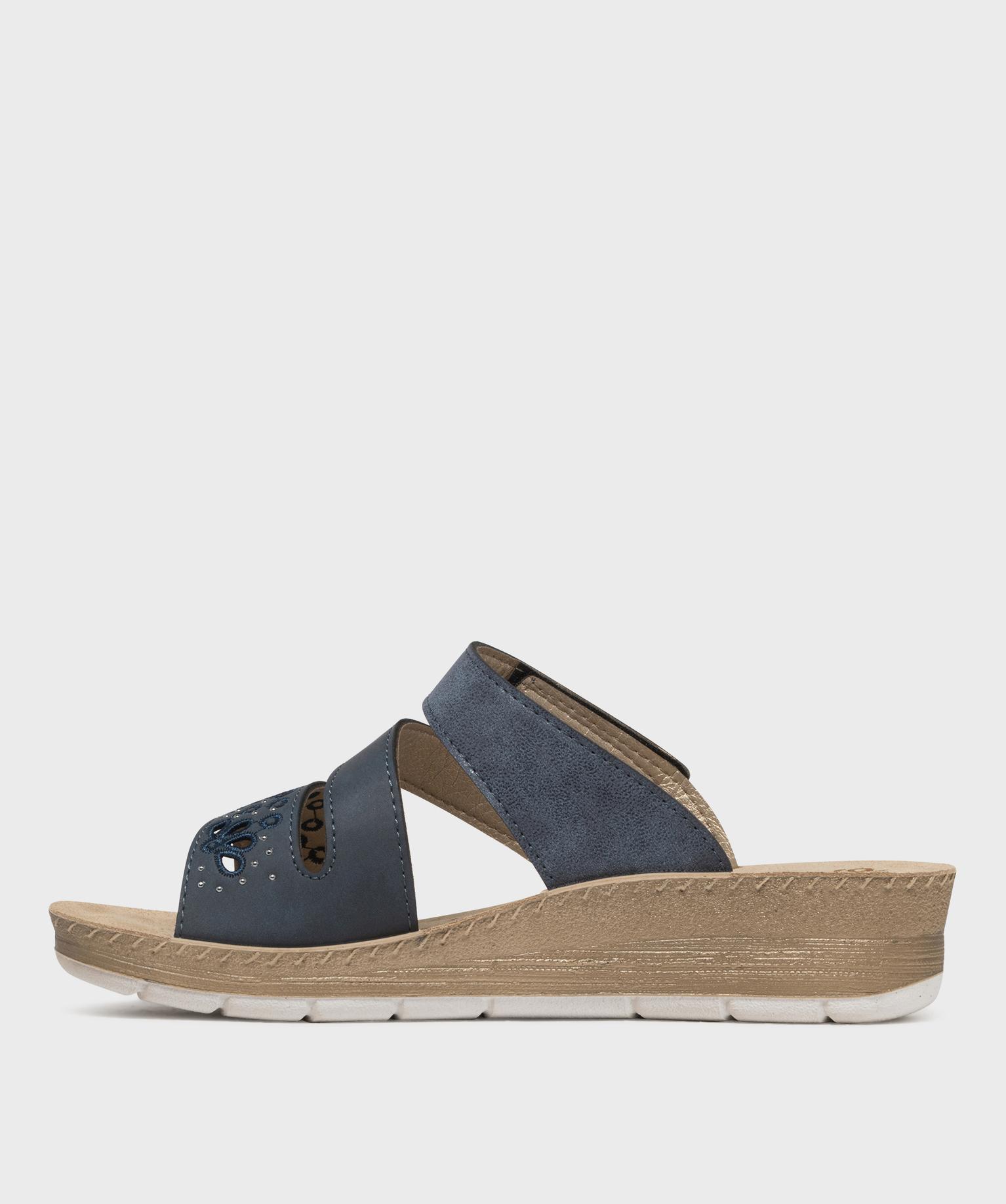 Ces jolies mules confort sont conçues pour offrir un maximum de bien-être aux pieds sensibles tout en ajoutant une touche d’élégance aux tenues du quotidien. Elles séduisent par leurs brides fantaisie, l’une ornée de broderies fleuries et de minuscules clous dorés et une aux reflets métallisés. Réglables par un scratch ces mules femme s’ajustent à chaque morphologie. Elles sont dotées d’une semelle intérieure en cuir perforée parfaitement respirante et reposent sur une semelle souple avec talon compensé. Un modèle idéal pour illuminer les tenues estivales. Semelle 2 cm.