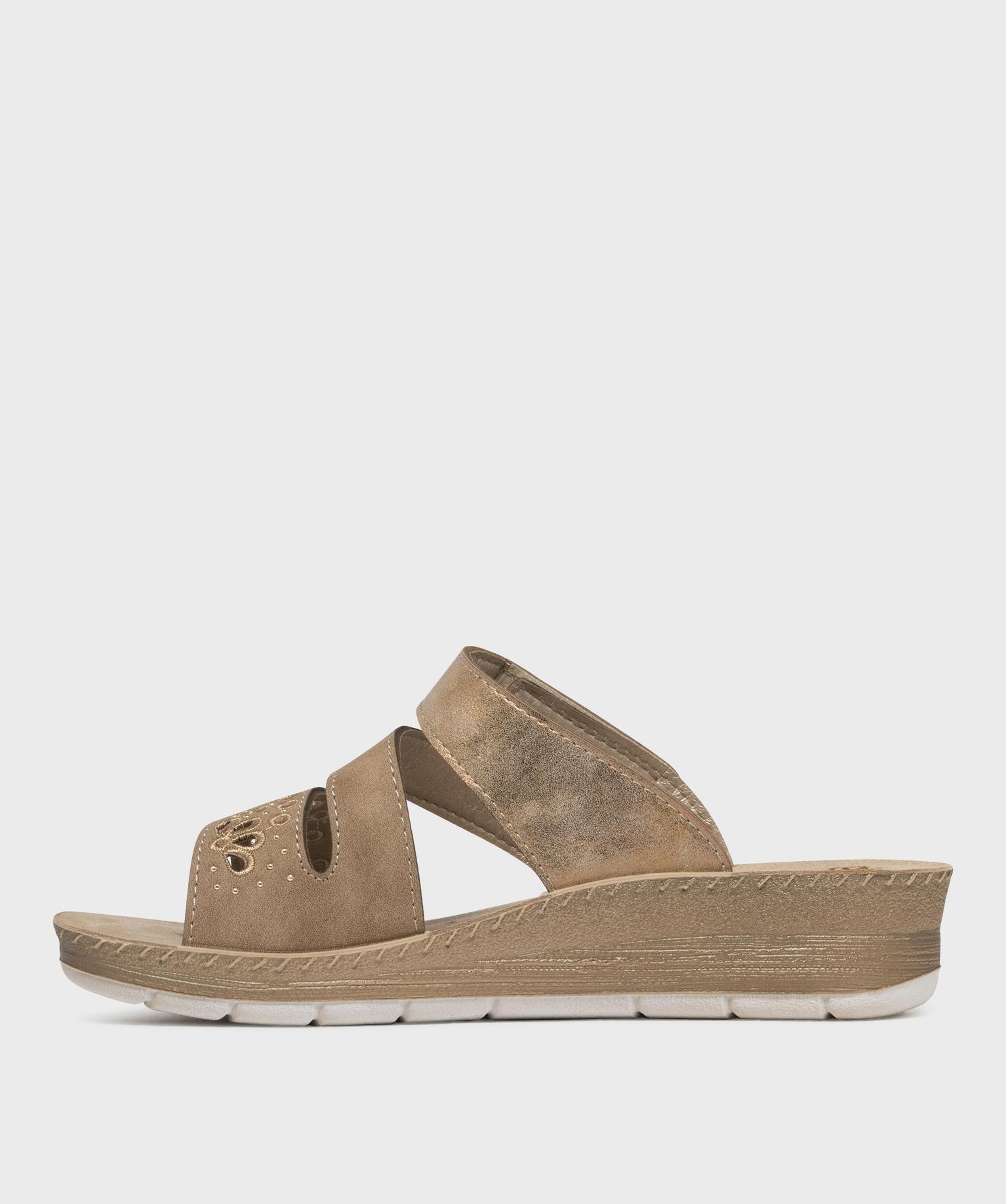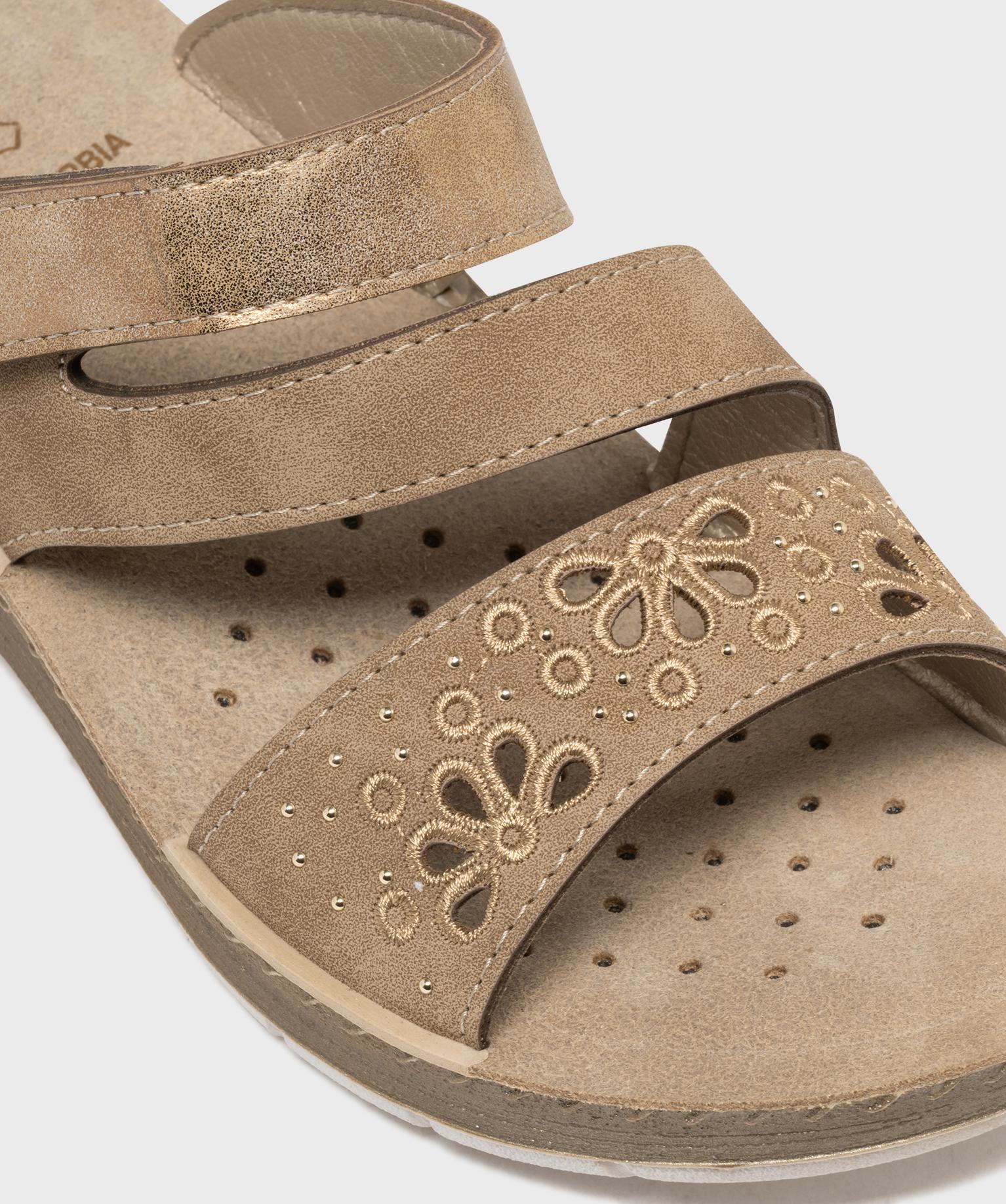 Ces jolies mules confort sont conçues pour offrir un maximum de bien-être aux pieds sensibles tout en ajoutant une touche d’élégance aux tenues du quotidien. Elles séduisent par leurs brides fantaisie, l’une ornée de broderies fleuries et de minuscules clous dorés et une aux reflets métallisés. Réglables par un scratch ces mules femme s’ajustent à chaque morphologie. Elles sont dotées d’une semelle intérieure en cuir perforée parfaitement respirante et reposent sur une semelle souple avec talon compensé. Un modèle idéal pour illuminer les tenues estivales. Semelle 2 cm.