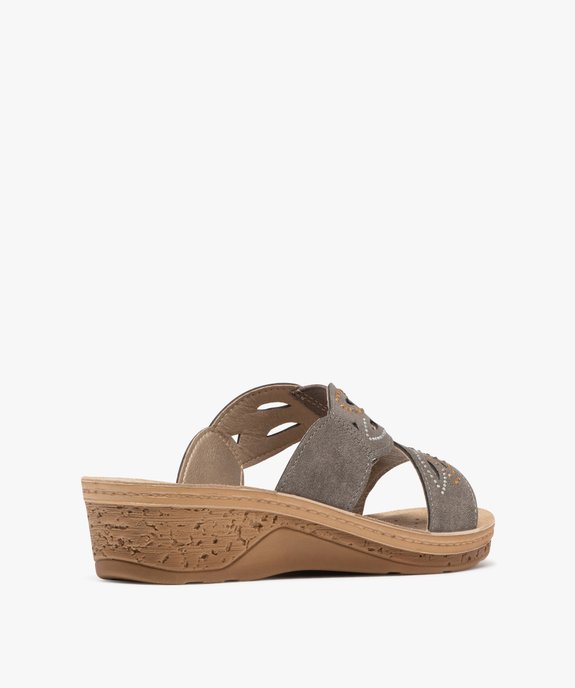 Mules confort à talon compensé et strass femme gris vif