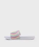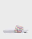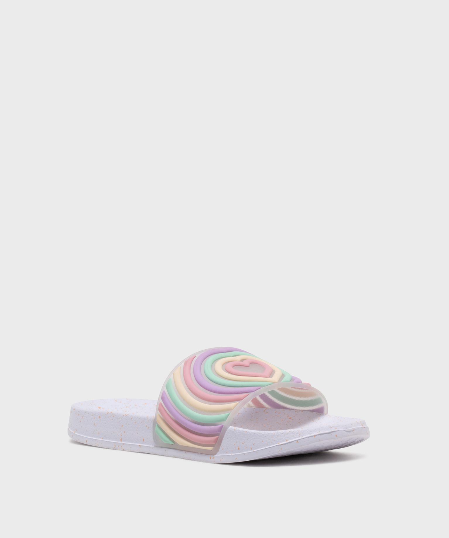 Ces mules de piscine fille seront parfaites pour protéger les petits pieds lors de toutes les sorties baignade. Des sandales ultra légères, faciles à enfiler et résistantes à l’eau. Elles possèdent une large bride ornée d’un joli motif coeur composé de lignes multicolores en relief, ajoutant une note girly à toutes les tenues. Elles sont dotées d’une semelle antidérapante au relief anatomique assurant une marche confortable même avec les pieds mouillés.