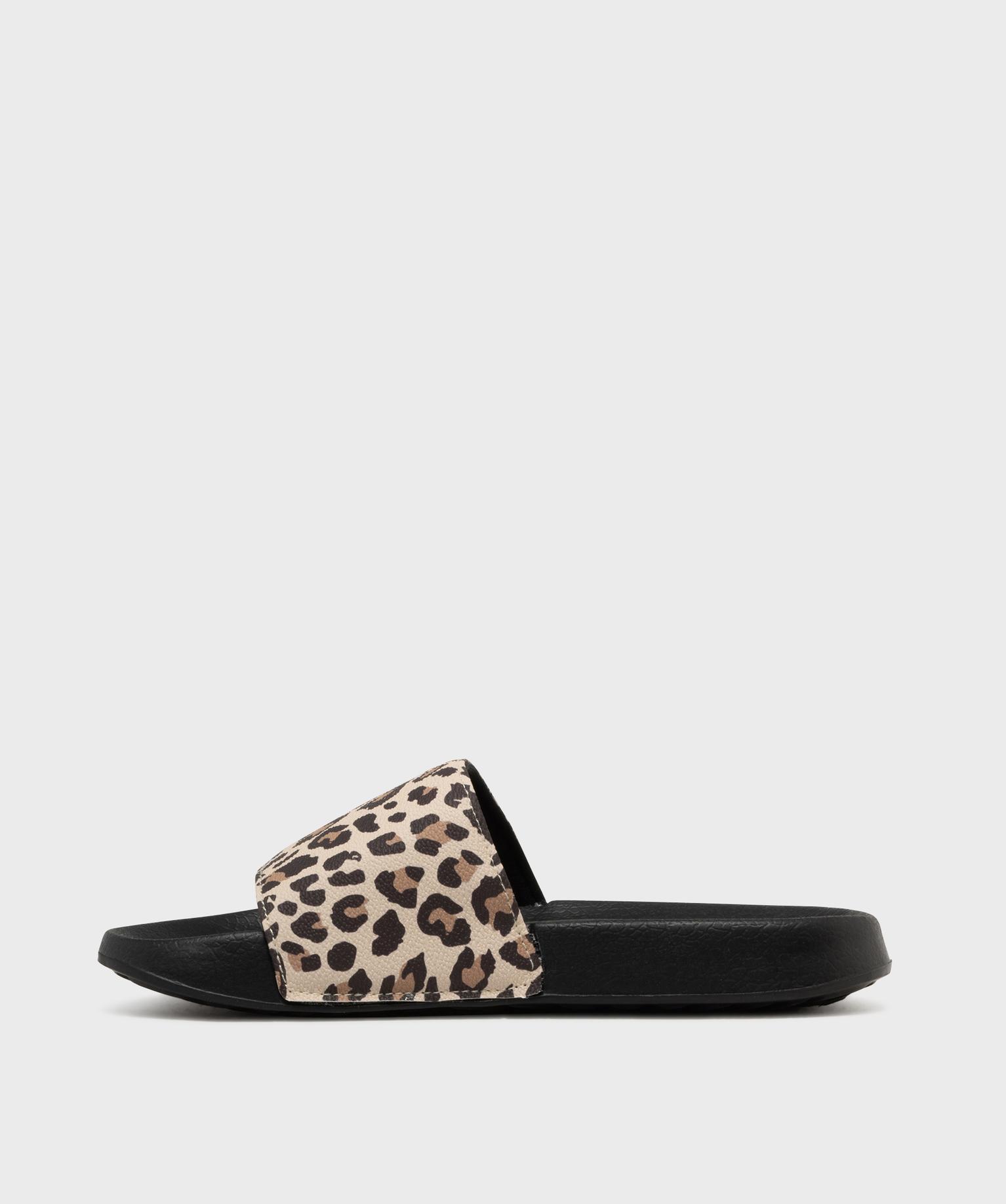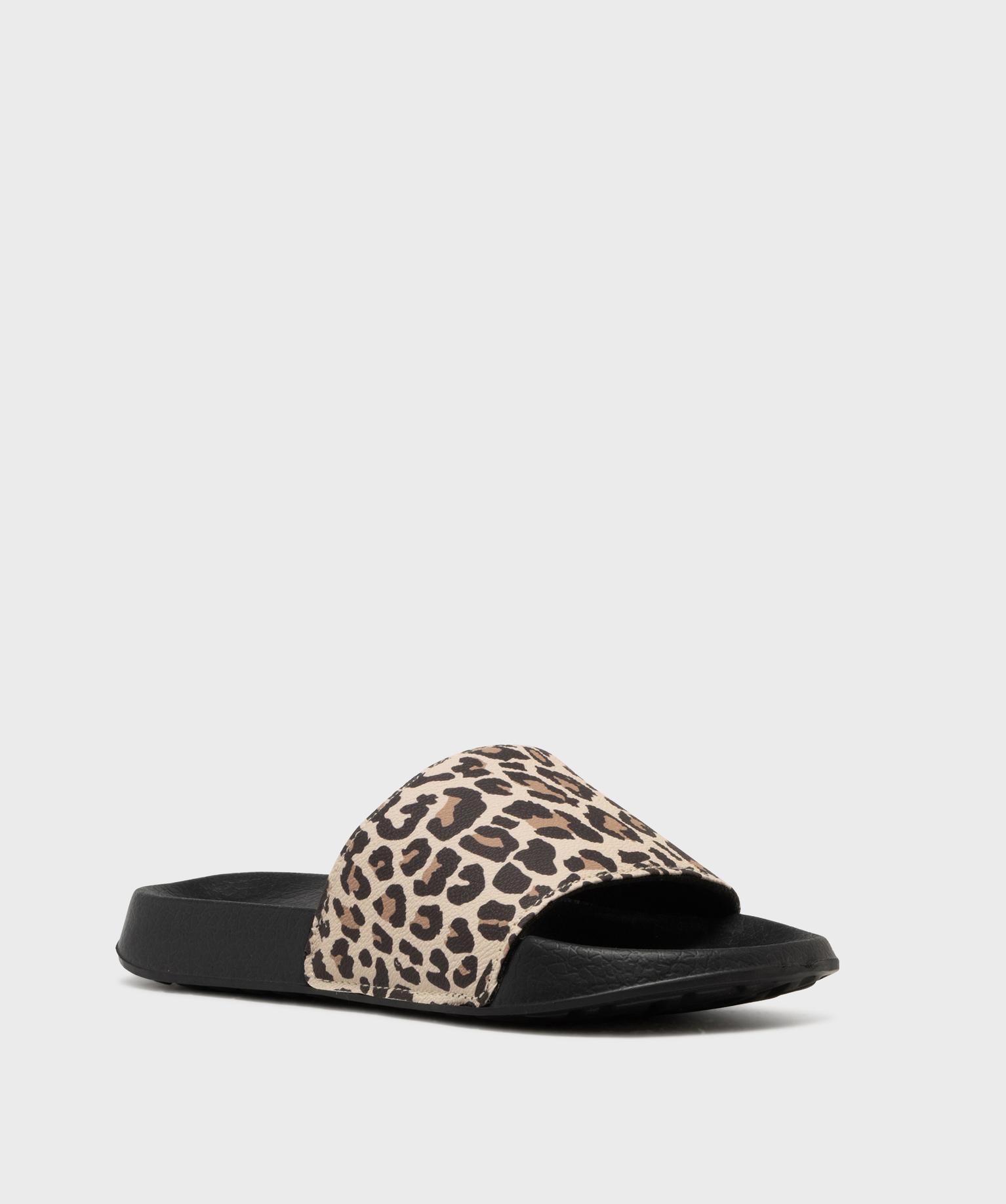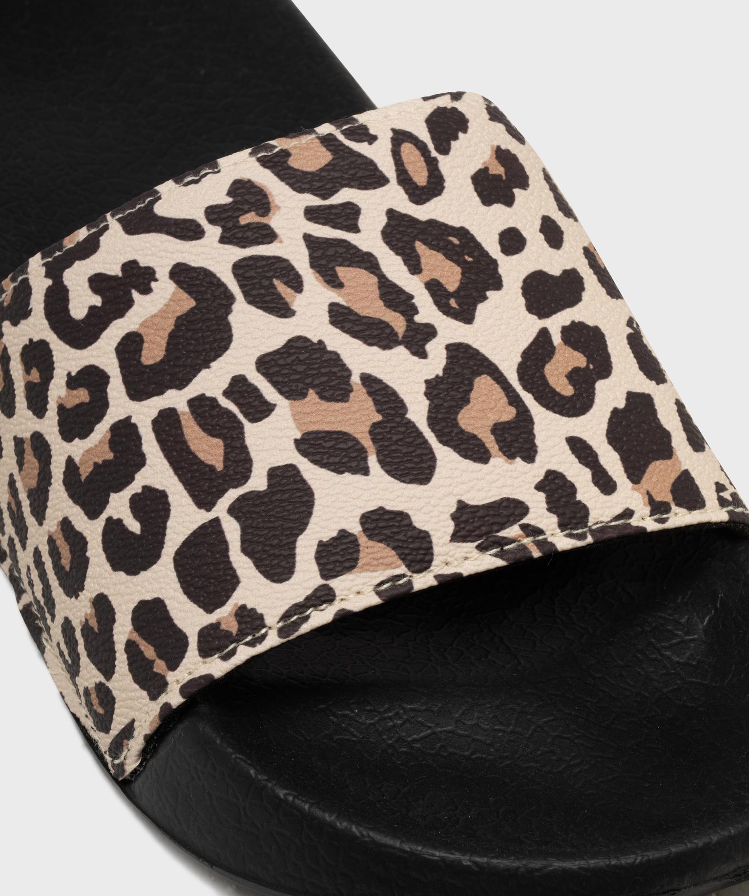 Mules de piscine à motif léopard femme beige