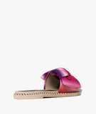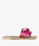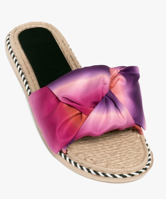 Pour vos journées au bord de l'eau, ces mules de piscine relèvent le défi des sandales plates confortables et féminines avec succès ! Au premier regard, la semelle débordante entourée d'un cordage bicolore et la semelle intérieure en corde imitation rappellent les sandales bohèmes. En réalité, la matière choisie s'adapte parfaitement à l'exposition à l'eau et dèche rapidement. On adore également la bride foulard flashy ou à paillettes selon votre choix. À porter avec vos tenues de bain ou shorts préférés.