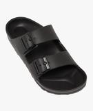 Mules de piscine femme à larges brides à boucle avec semelle crantée noir