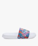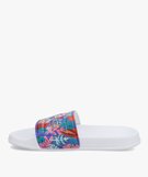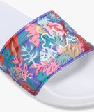 La marque de sportswear Kappa propose ici un modèle de mules de piscine pour femme au décor particulièrement séduisant. Le bandeau, en matière synthétique matelassée, est imprimé d’un motif jungle aux couleurs acidulées. Ces jolies mules plates se fondront aussi bien avec les tenues de sport pour apporter une touche girly à la sortie de vestiaires, qu’avec une robe de plage pour une touche sportive au bord de l'eau.
