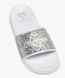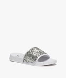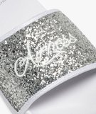 La claquette de piscine se pare de ses habits de lumière pour sortir des bassins ! Ces mules de piscine pour femme Airness se distinguent par leur large bandeau entièrement couvert de paillettes. Pour rester dans cette atmosphère girly, on retrouve par-dessus ces paillettes le logo Airness en écriture cursive toute fine. Des mules à talon plat montées sur une semelle légère avec reliefs ergonomiques. A porter avec une jupe longue unie pour une touche fun et sportive.