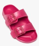 Mules de piscine fille pailletées à brides ajustables rose vif