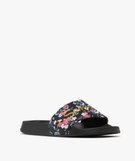 Mules de piscine imprimé fleuri à bandeau moussé femme noir
