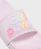 Ces jolies mules de plage permettront aux jeunes fashionistas d’affirmer haut et fort leur « Girl Power » tout l'été ! Des sandales fille déclinées dans un coloris tendre, avec une large bride pailletée ornée d’une inscription en lettre multicolores en relief. Un modèle pétillant idéal pour dynamiser les tenues. Elles sont dotées d’une semelle intérieure de forme anatomique au relief antidérapant. Légères, ces sandales de piscine se glissent facilement dans un sac de piscine, un sac de plage ou une valise.