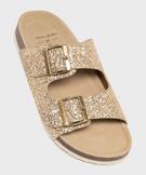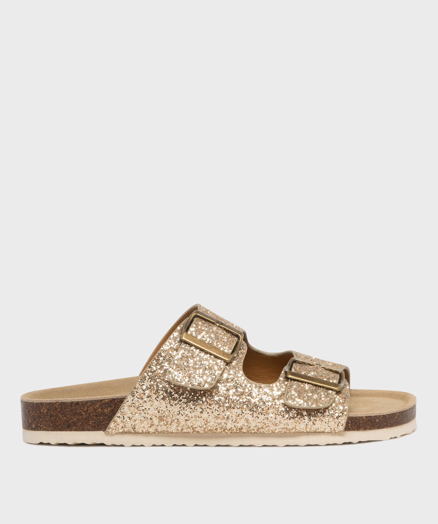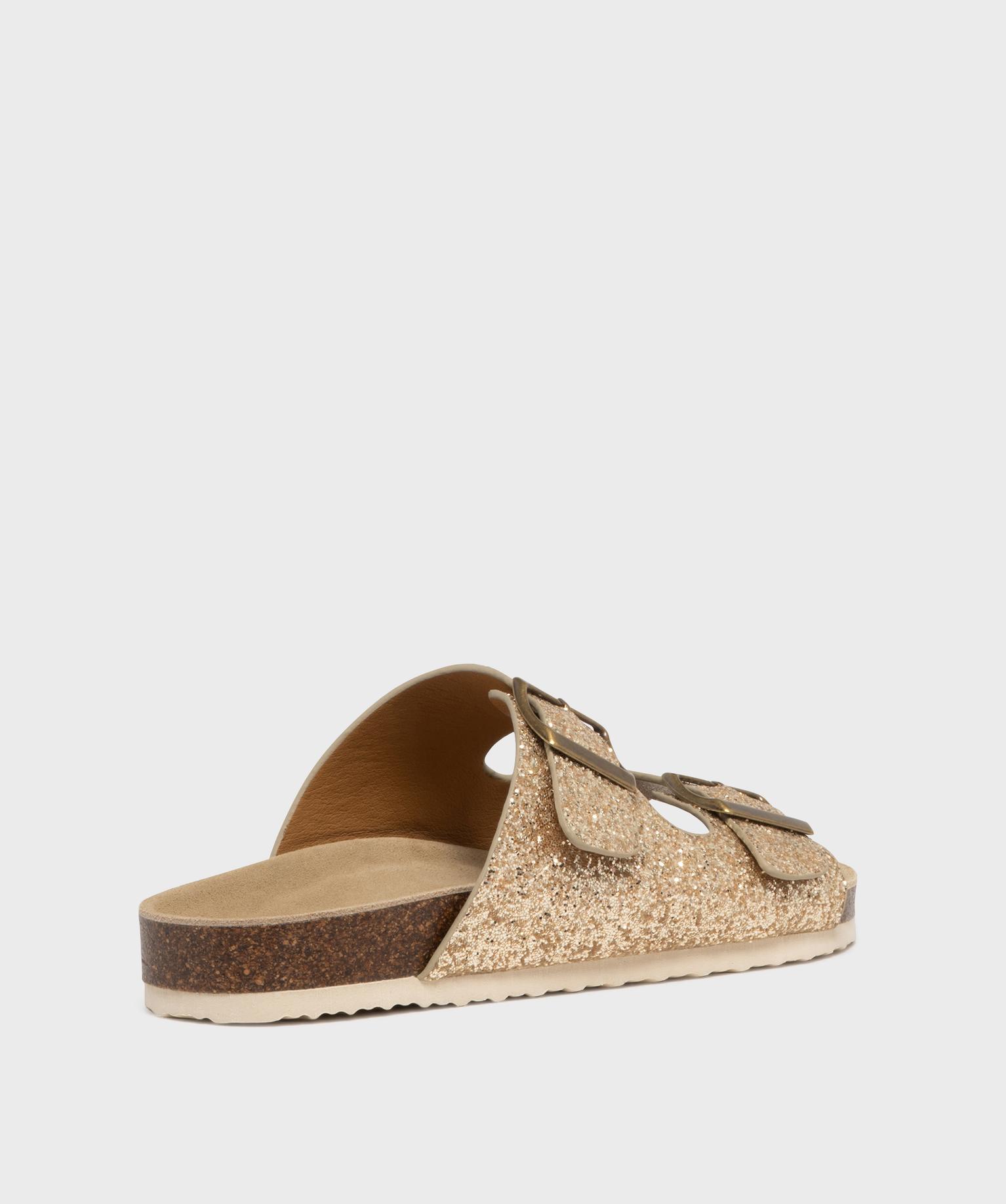 Mules double bride à paillettes avec semelle intérieure cuir femme - 5 Miles dore