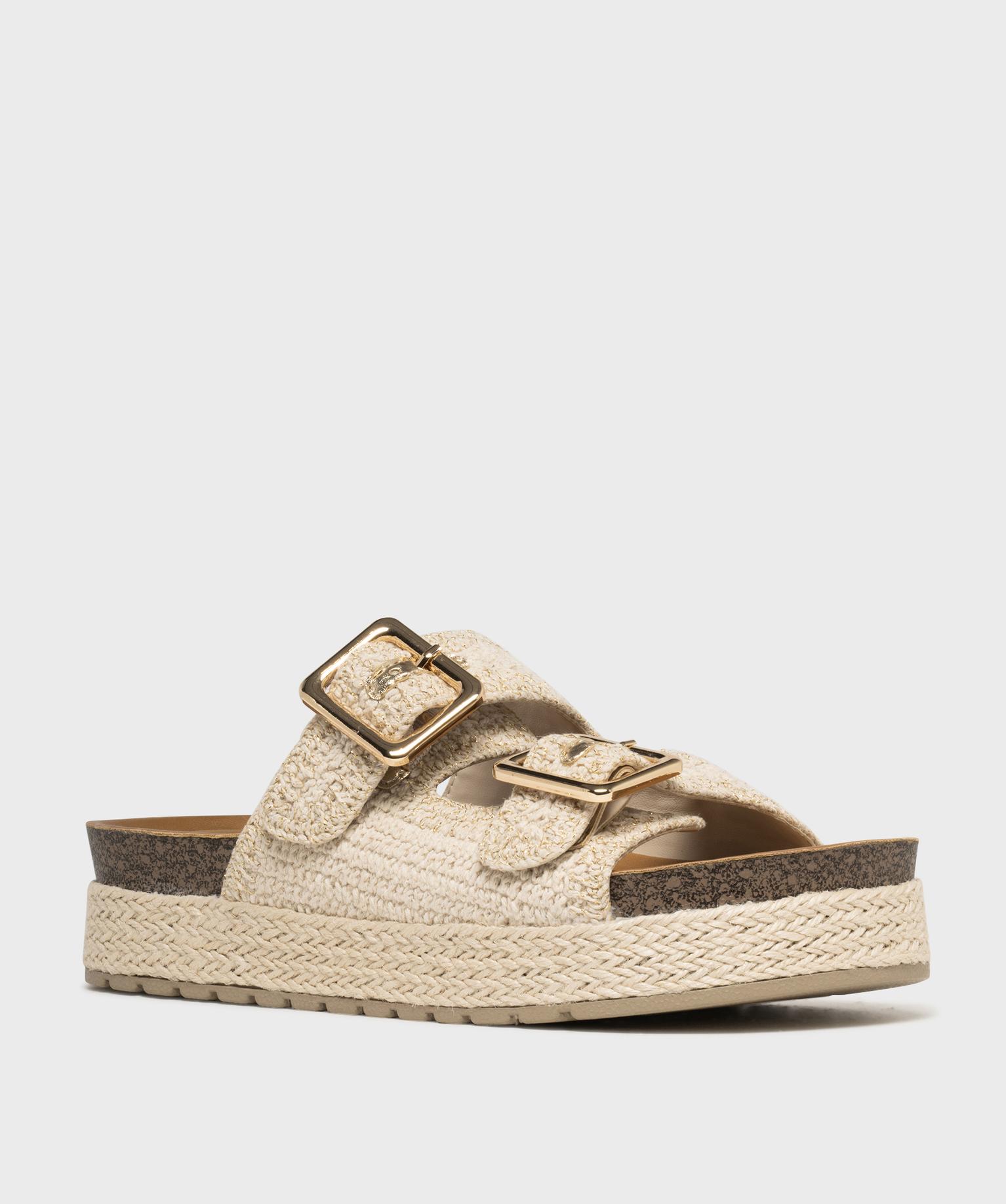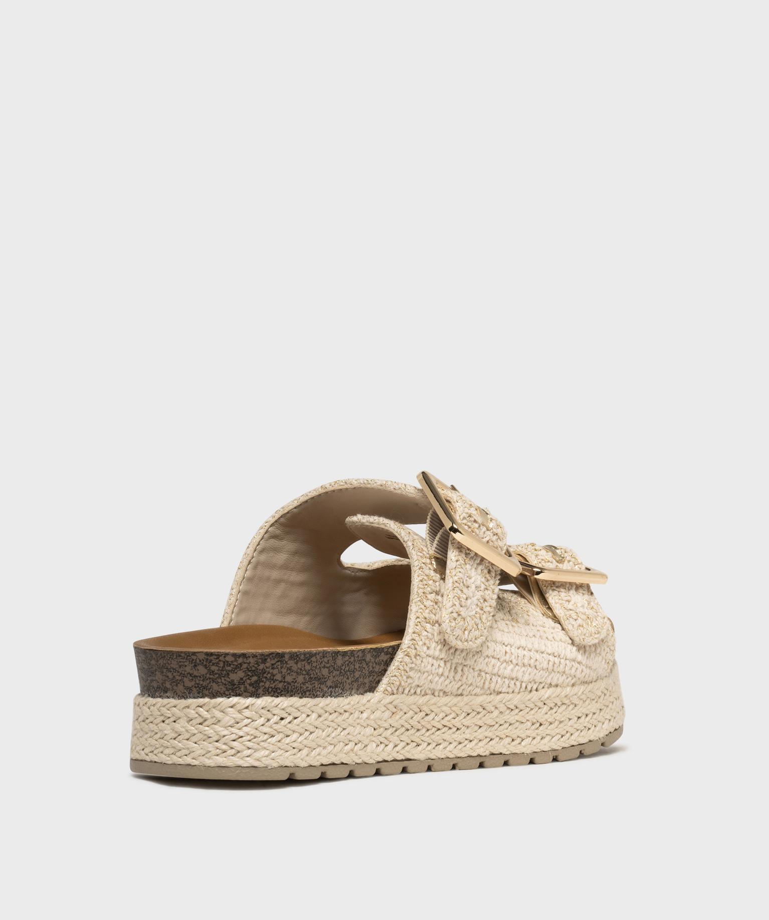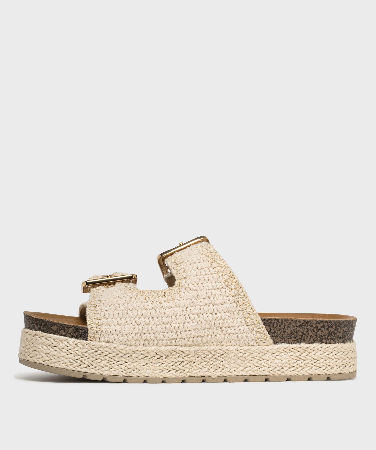 Mules double bride en textile avec semelle plateforme femme - 5 Miles ecru