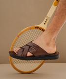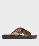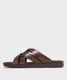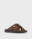 Mules en cuir confortables à brides croisées homme - Pierre Cardin[MISSING] marron fonce