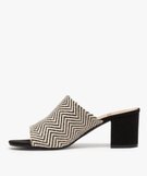 Une inspiration ethnique bien menée, un talon carré recouvert, et quelques touches brillantes : ces mules femme s’inscrivent parmi les pièces élégantes de la belle saison. On aime particulièrement le large bandeau qui enveloppe confortablement le pied, recouvert d’une jolie toile à chevrons parsemée de touches brillantes. Les finitions sont soignées : le talon et le bout de ces mules sont recouverts de suédine unie. Des mules élégantes et féminines, à porter avec un pantalon habillé ou une robe de soirée.