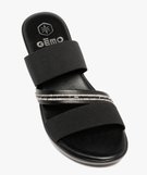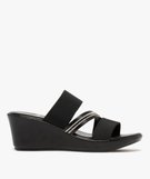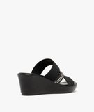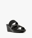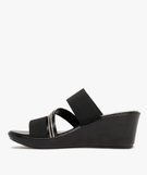 Mules femme à talon compensé avec brides élastiques et strass noir
