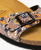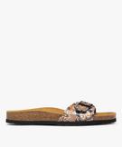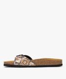 Mules femme à talon plat avec bride ajustable à motifs noir