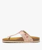 Mules femme à talon plat avec bride entre-doigts à motifs scintillants rose
