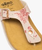 Ces nu-pieds GEMO ont tout pour plaire. Faciles à enfiler, ces mules pour femme s'équipent d'un entre-doigts. Elles sont décorées d'un joli motif scintillant contrastant qui donnera du pep's à toutes vos tenues d'été : robe denim, short en lin, pantalon en soie ou ensembles unis... Pour un maximum de confort, la semelle intérieure de ces sandales plates est en cuir et à reliefs ergonomiques. Bride à boucle ajustable;
