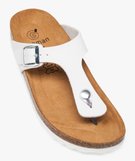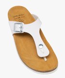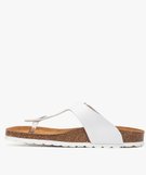 Mules femme à talon plat avec large bride en T unie[MISSING] blanc