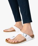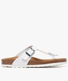 La sandale à entre-doigts est un indispensable de l’été : avec sa semelle intérieure en cuir doux au toucher, marquée de reliefs anatomiques, elle deviendra vite votre chaussure préférée ! Et pour pouvoir les associer à toutes vos tenues, des plus décontractées aux plus féminines, ces mules pour femme se déclinent en de nombreux coloris tendance et en finition mat, vernie ou brillante. On les adore avec un bermuda et un crop top en voile de coton ou un jean retroussé et une ample chemise en lin fluide. Bride avec boucle réglable sur le côté du pied.