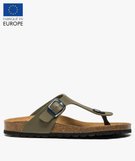 La sandale à entre-doigts est un indispensable de l’été : avec sa semelle intérieure en cuir doux au toucher, marquée de reliefs anatomiques, elle deviendra vite votre chaussure préférée ! Et pour pouvoir les associer à toutes vos tenues, des plus décontractées aux plus féminines, ces mules pour femme se déclinent en de nombreux coloris tendance et en finition mat, vernie ou brillante. On les adore avec un bermuda et un crop top en voile de coton ou un jean retroussé et une ample chemise en lin fluide. Bride avec boucle réglable sur le côté du pied.