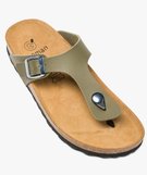 Mules femme à talon plat avec large bride en T unie[MISSING] kaki