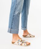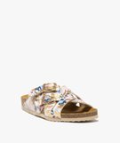Mules femme avec brides à boucle croisées effet painting multicolore