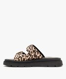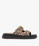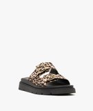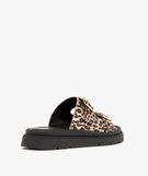 Mules femme avec brides à boucle léopard duveteuses et à semelle épaisse imprime