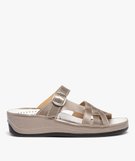 Mules femme confort compensées dessus cuir marron