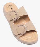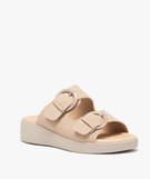Mules femme confort unies avec brides à boucle en suédine - Hobiz beige