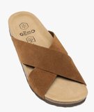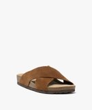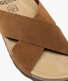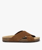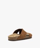 Mules femme en cuir style casual avec brides croisées unies marron clair