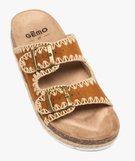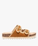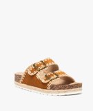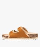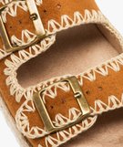 Mules femme hippie en suédine avec brides à boucle marron clair