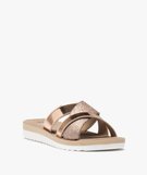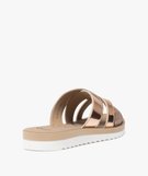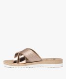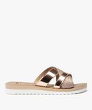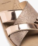 Ces mules pour femme adoptent un style tendance et féminin. Une semelle intérieure confortable épousant la forme du pied assure un confort agréable. Idéales pour la saison d'été, ces nu-pieds féminins croisent des brides métallisées et une plus épaisse à paillettes, sur l'avant du pied. On adore la semelle contrastante et l'effet cranté. A porter avec vos looks casual ou vos tenues de plage.