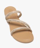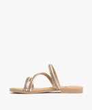 Mules fille à brides tubulaires pailletées et à strass dore